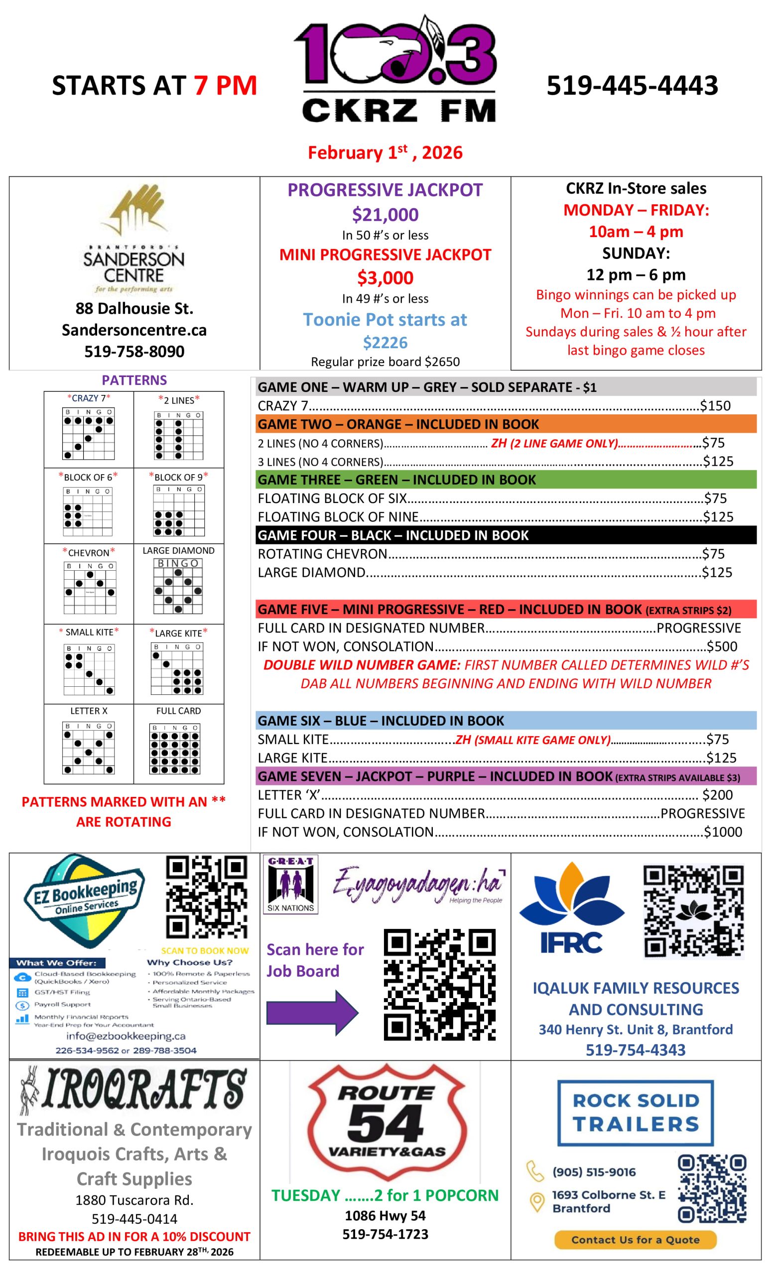 Due to worsening inclement weather and erring on the side of caution, tonight’s Radio Bingo (Jan 25) has been cancelled for the safety of CKRZ Staff and Bingo Players. All purchased cards will be honoured for next weeks bingo (Feb 1) Thank you all for your understanding